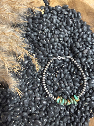 Sterling Silver Beaded Bracelet with Genuine Turquoise Chips | Southwestern Silver Bracelet