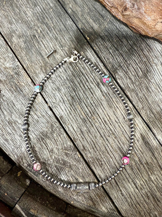 16” with 5mm Genuine Sterling Silver “Navajo Style” pearls and turquoise necklace