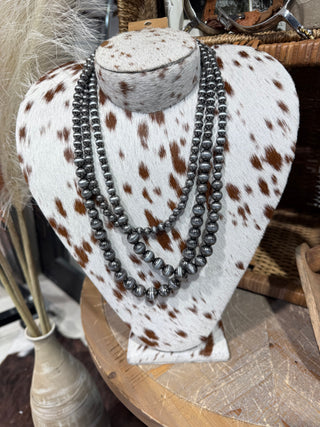 3-Strand Mixed Bead Faux Navajo Pearls Necklace – Layered Western Silver Statement