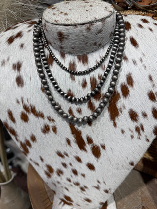 4-Strand Navajo Pearl Style Necklace – Oxidized Silver Bead Layered Western Jewelry