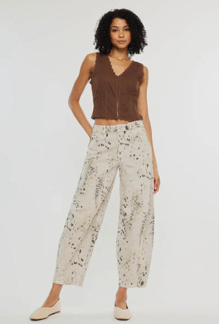Kancan Brindle Cow Print Barrel Jeans-Horseshoe Style