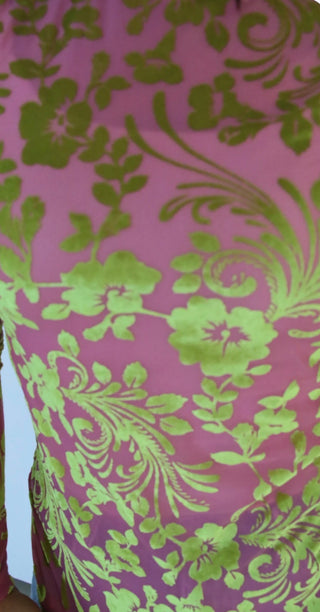 Pink & Lime Green Velvet Jacquard Floral Mesh Long Sleeve Top | Western Boho Women’s Boutique