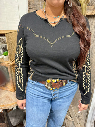 Black Western Embroidered Long Sleeve Top – Turquoise Stitch Rodeo Graphic Tee