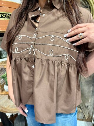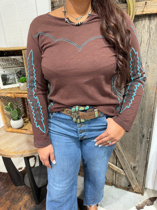 Chocolate Western Embroidered Long Sleeve Top – Turquoise Stitch Rodeo Graphic Tee