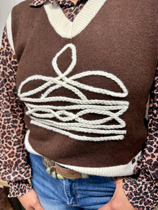 Chocolate Brown Boot Stitch Graphic Western Sweater Vest – Cowgirl Layering Knit