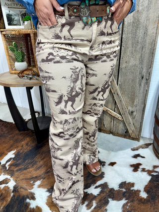 Cowgirl Bronc Rider Print Denim Chambray Shirt – Western Button Down Blouse