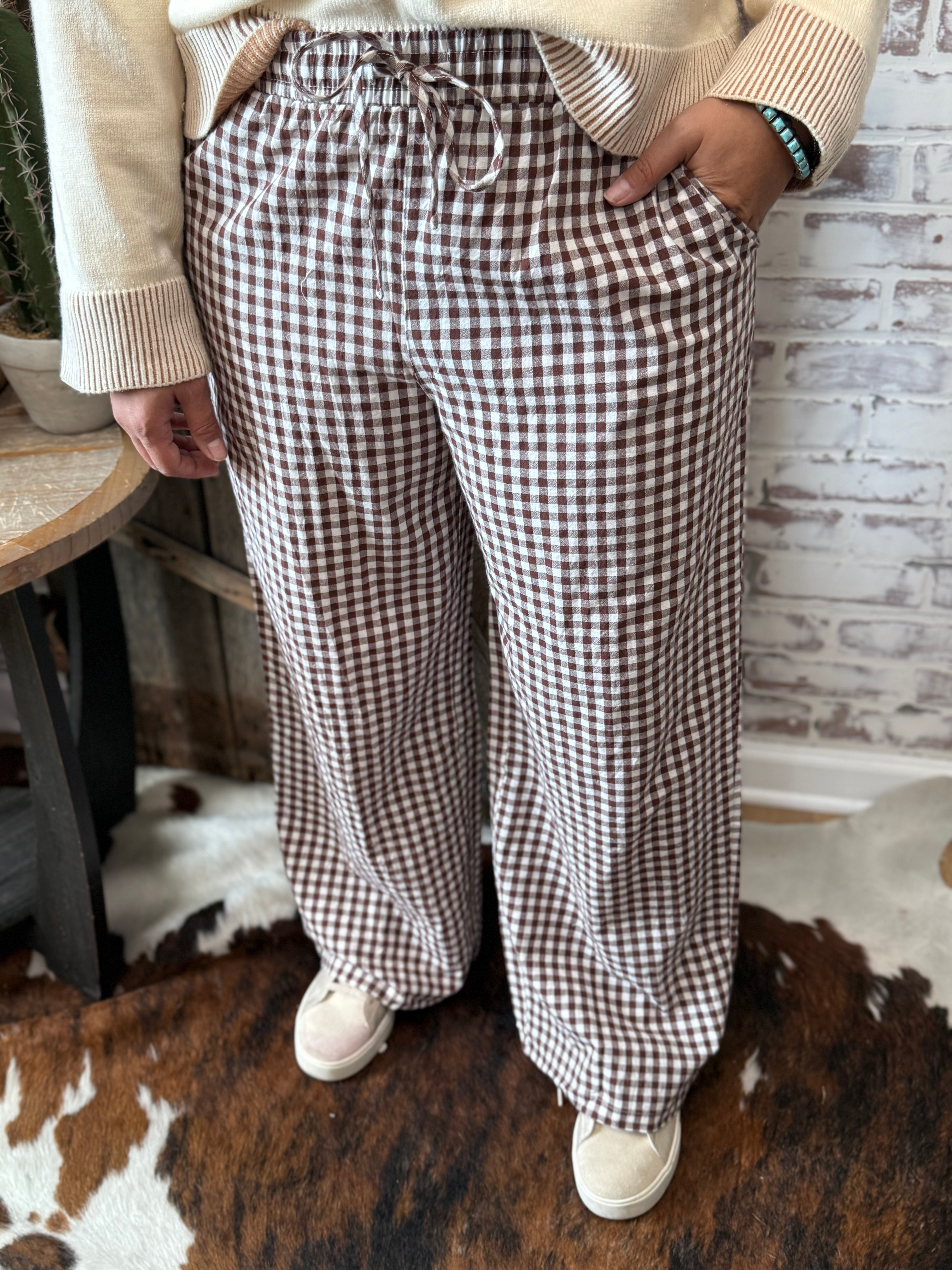 Crafted from soft, breathable fabrics, these black n white gingham pants are designed to keep you cool and comfortable throughout the day. Ideal for crisp autumn & spring summer weather, they provide maximum comfort whether you're lounging at home or running errands year round .