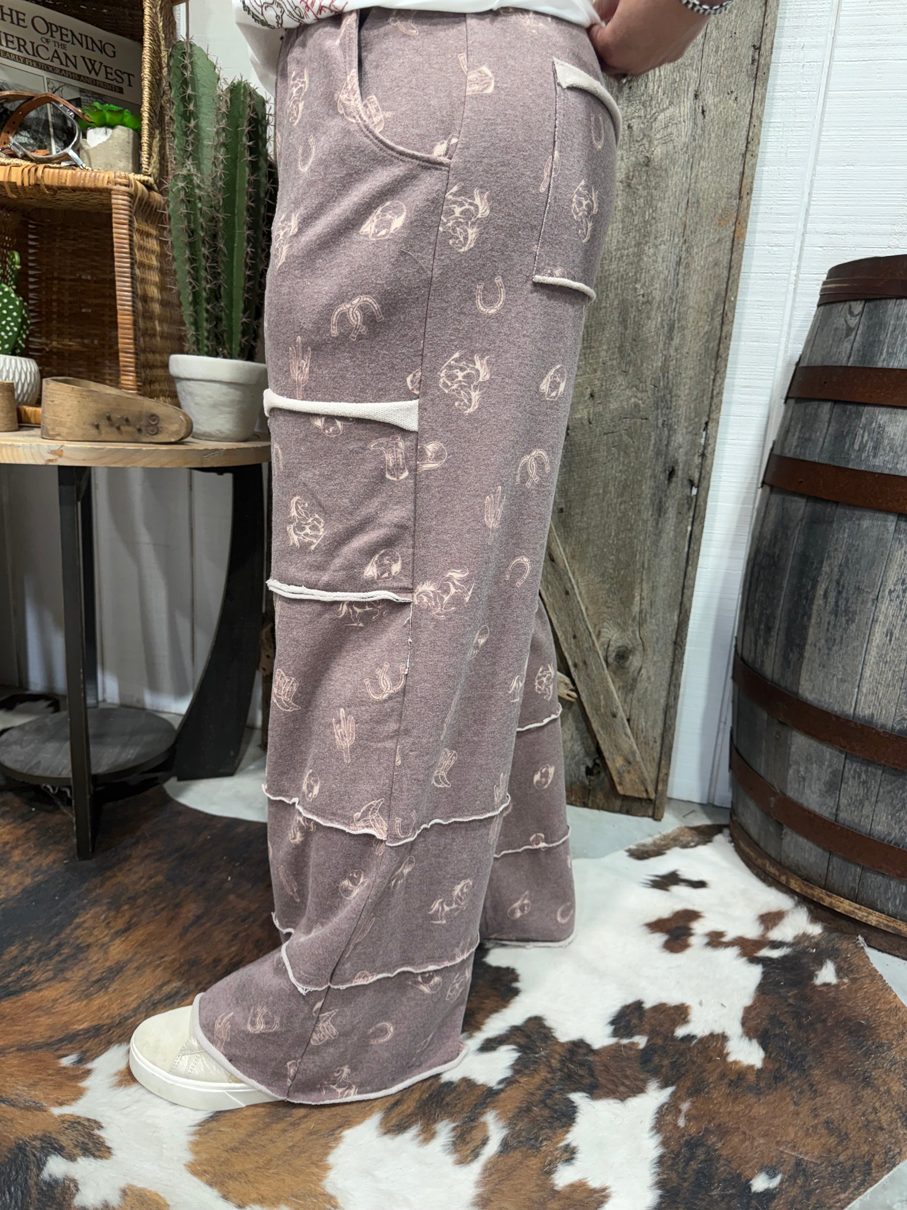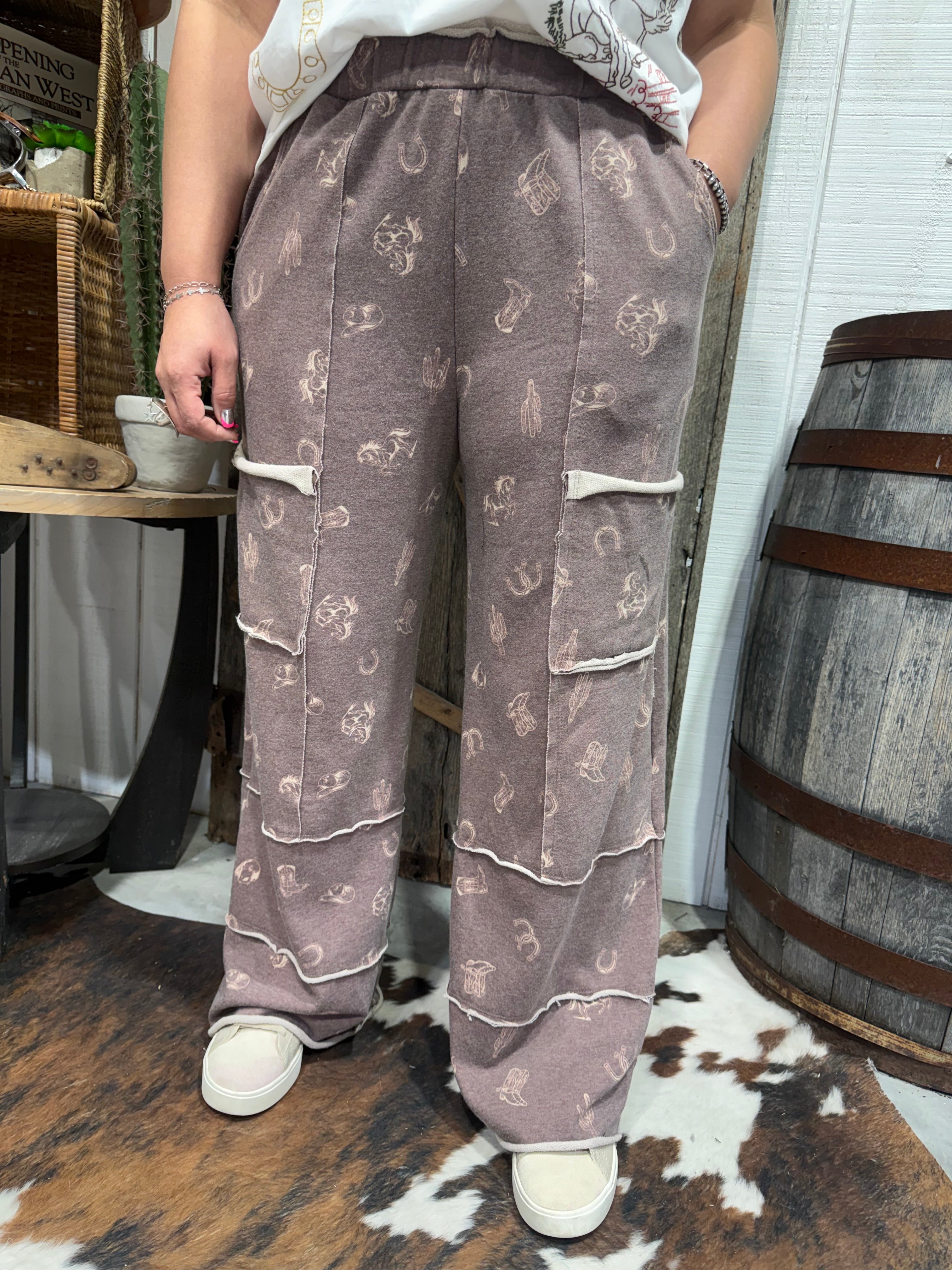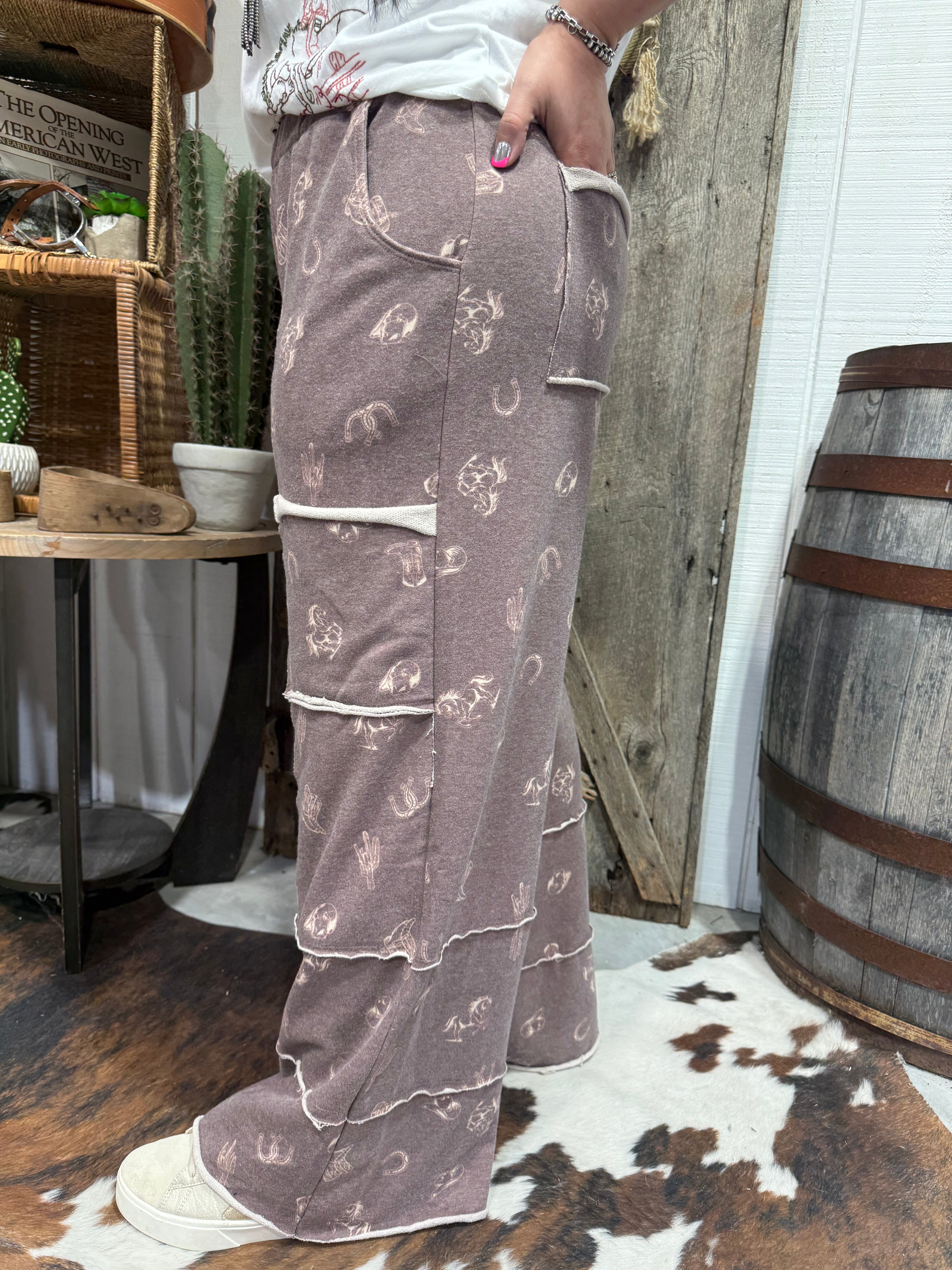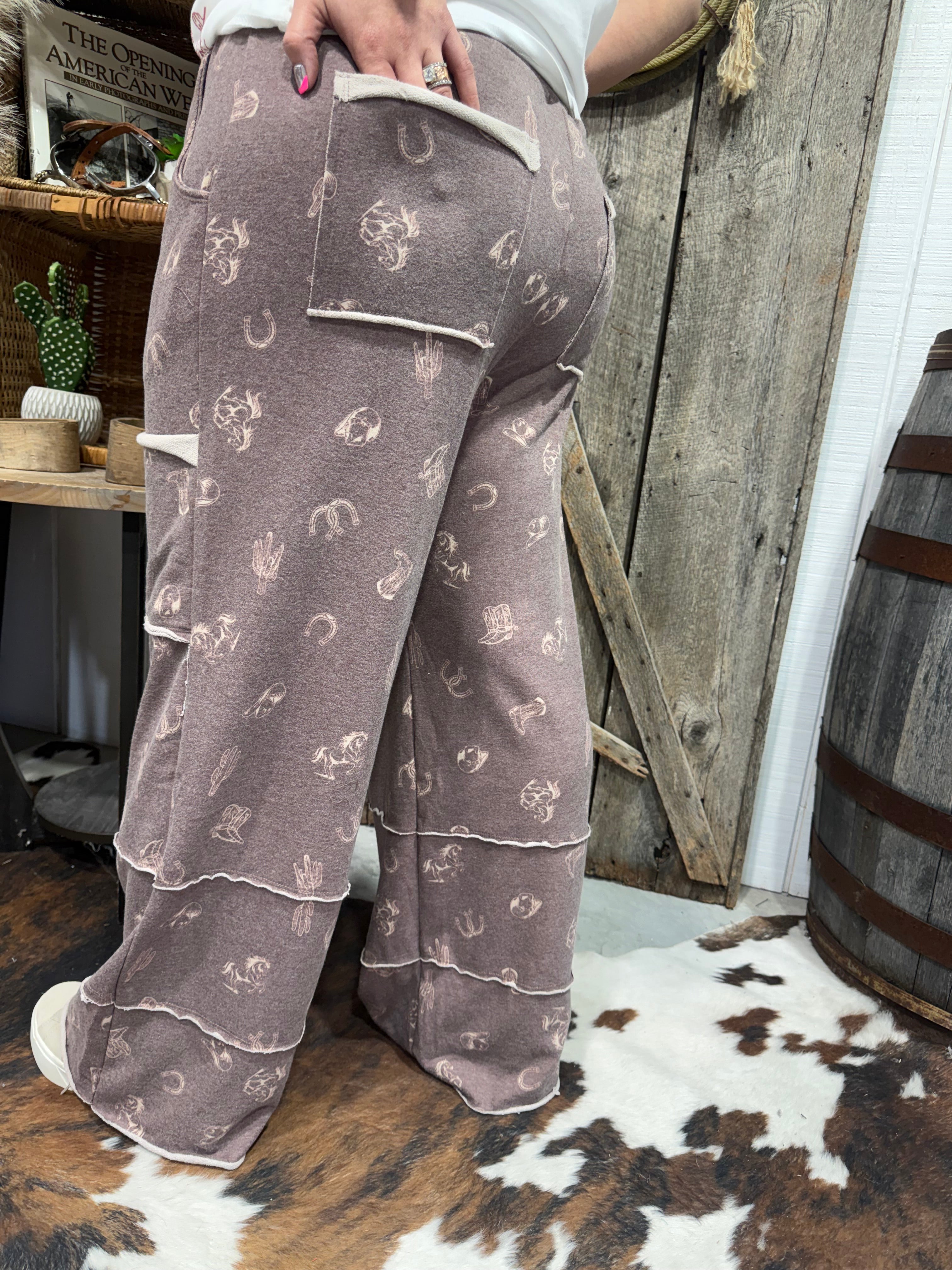 Perfect for casual days, road trips, lounging, or styling up with a cropped tee or denim jacket, these pants blend comfort with western personality — a must-have for your everyday cowgirl wardrobe.