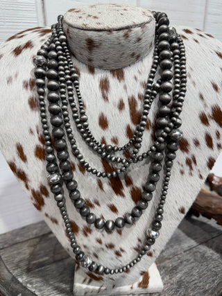 4-Strand Navajo Pearl Style Necklace – Oxidized Silver Bead Layered Western Jewelry