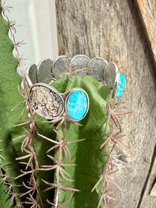 Buffalo Nickel & Turquoise Stretch Bracelet | Western Statement Silver Bracelet