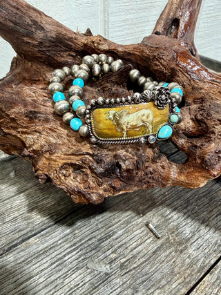 Turquoise Cowhead Clay Necklace with – Western Beaded Chain