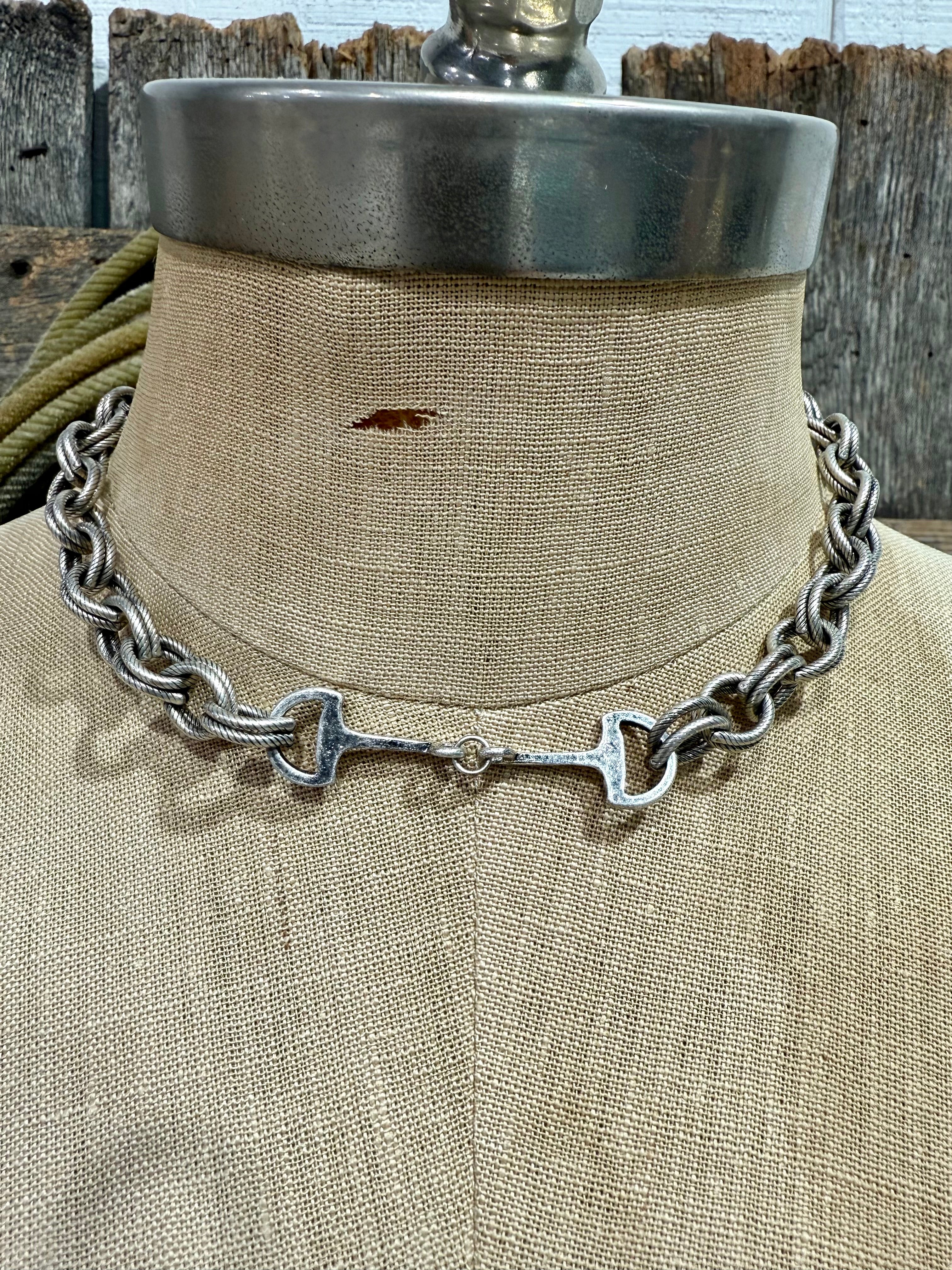 Silver Western Snaffle Bit Chain Necklace | Chunky Rope Link Cowgirl Jewelry