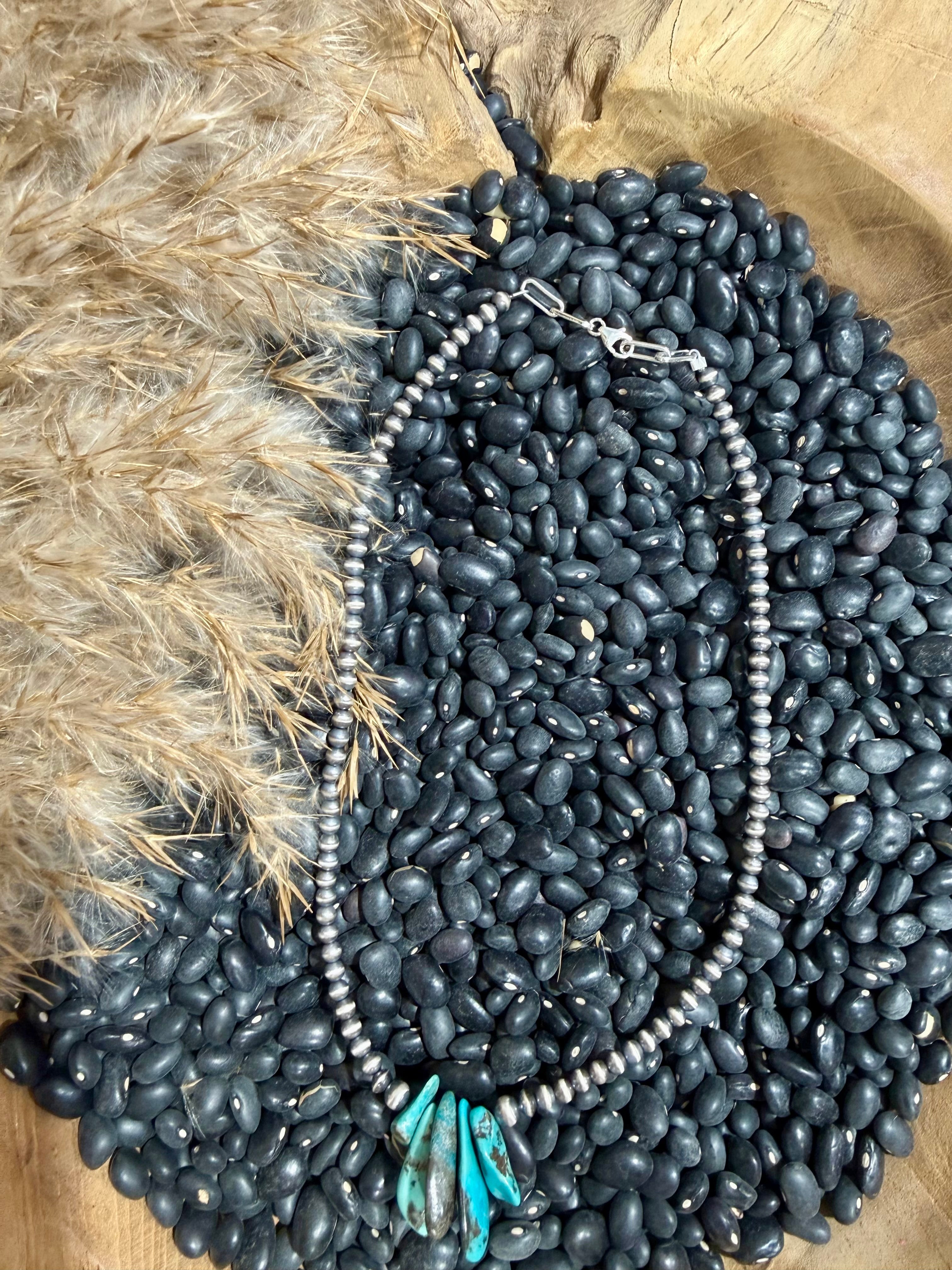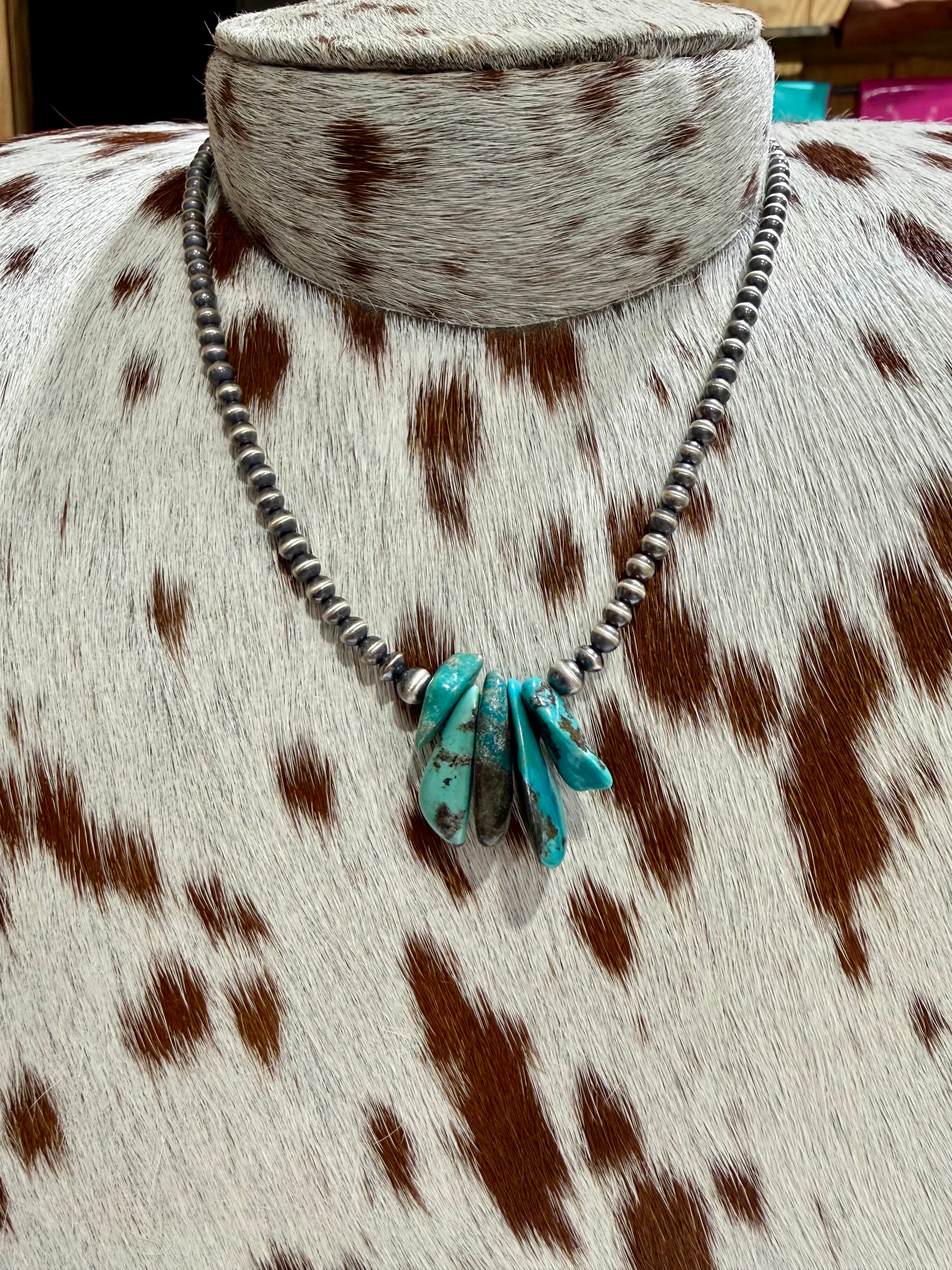 This sterling silver beaded necklace features genuine turquoise nugget drops that bring authentic Southwestern character to a timeless silhouette. Strung on classic sterling silver beads, the vibrant turquoise showcases natural matrix and color variation, making each necklace truly one of a kind. Finished at a versatile 16” length, it layers beautifully or stands strong on its own for an effortlessly western statement.