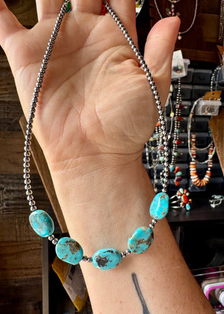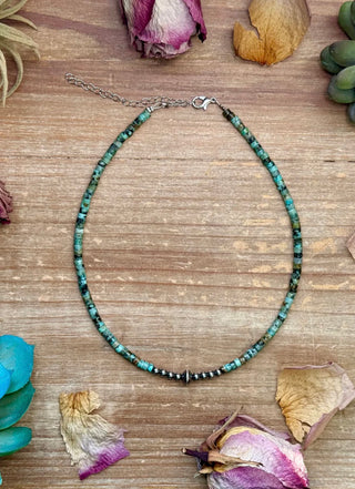 Turquoise Heishi Choker Necklace with Sterling Silver Accent Beads | Western Boho Jewelry