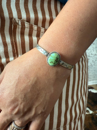 Sam Yellowhair Sterling Silver Cuff – Natural Sonoran Gold Turquoise Bracelet-003