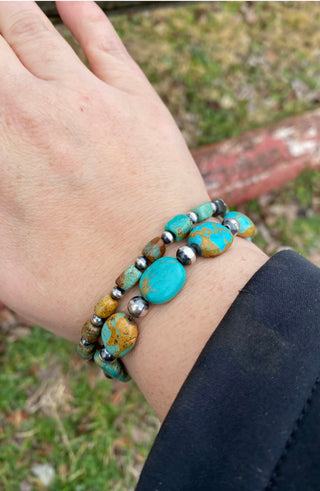 Turquoise Clasp Bracelet with Sterling Silver Beads | Southwestern Western Jewelry