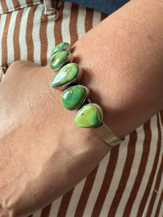 Native American Sonoran Gold Turquoise Cuff – Handcrafted Sterling Silver Bracelet