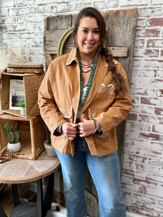 Saddle Tan Western Stitched Barn Jacket – Horseshoe & Horse Embroidery