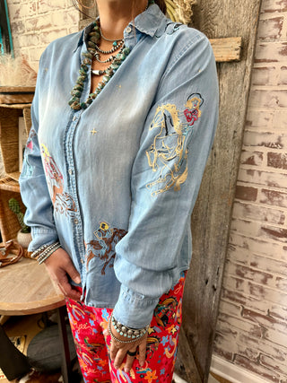 Embroidered Cowgirl & Rodeo Denim Button Down Shirt – Western Rodeo Style