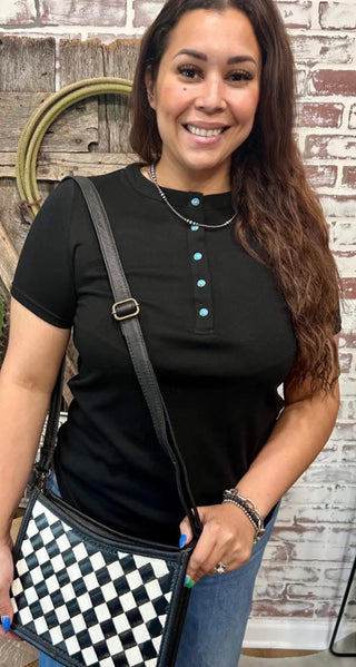 Black & Cream Western Studded Top – Vintage Cowgirl Yoke Long Sleeve Shirt-Plus Sizes Too!
