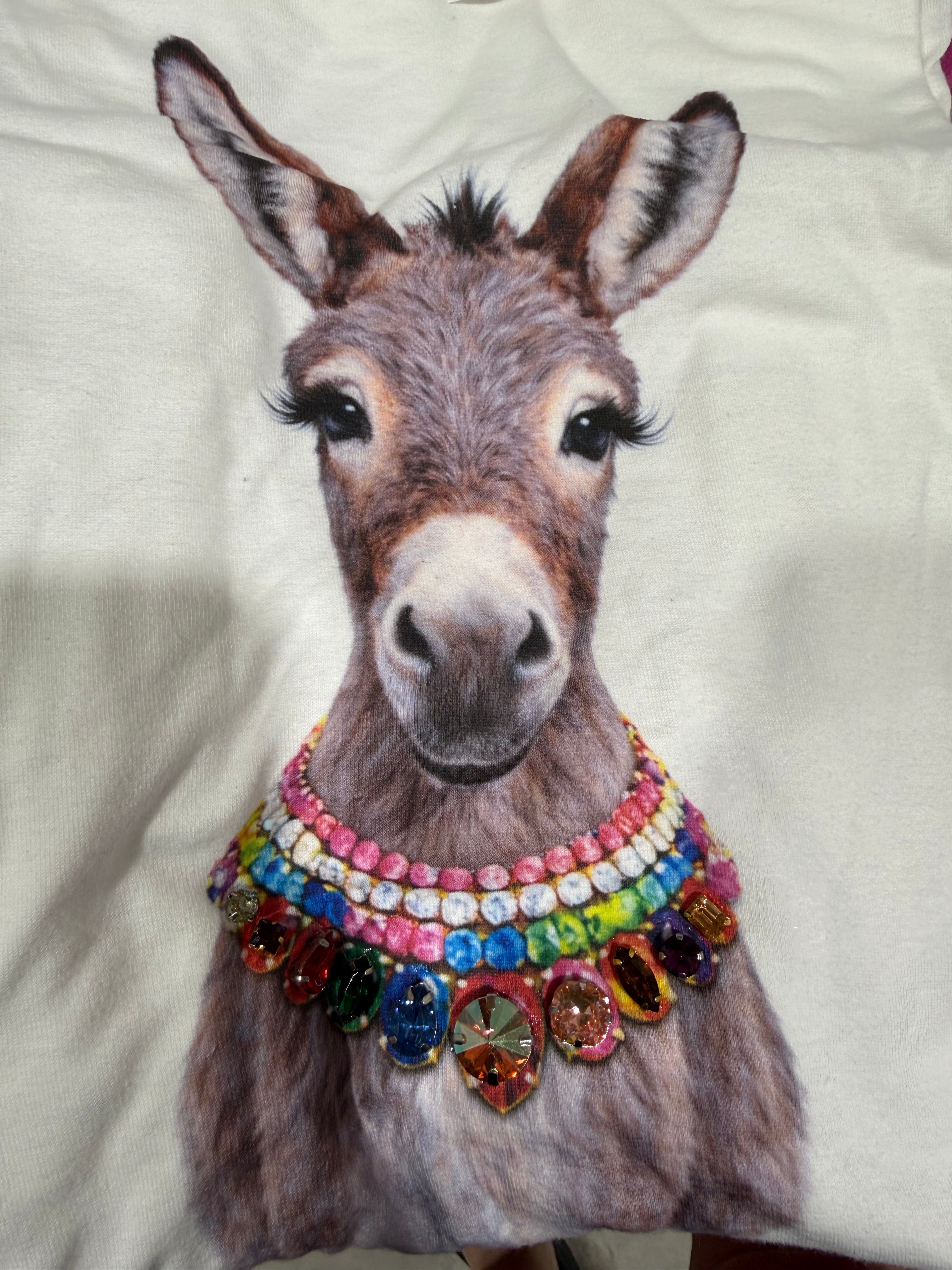 ✨ Unique donkey graphic with sparkling jeweled necklace detail
