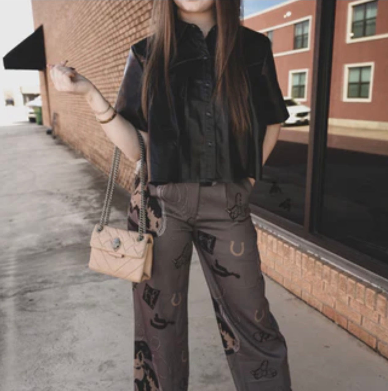 Made with a smooth, lightweight fabric that drapes beautifully, these trousers offer a relaxed leg fit and a comfy mid-rise waist. Pair them with sneakers for a street-style twist or elevate the look with a chic blouse and boots. Trendy, unique, and unapologetically western — these are the pants you’ll reach for when you want to stand out.