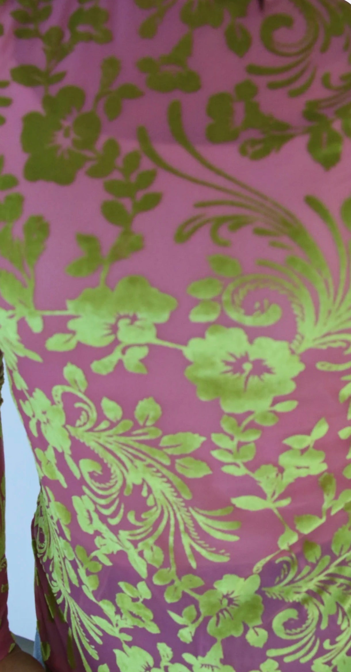 - Lime Green and Pink velvet jacquard floral pattern