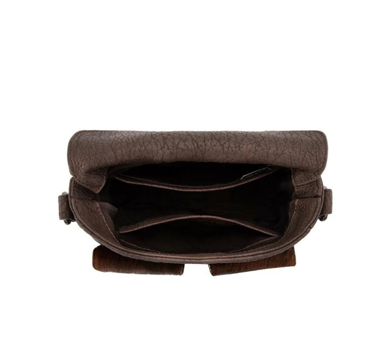Trinity Ranch Hair-On Hide Crossbody Bag with Concho Pockets- Coffee